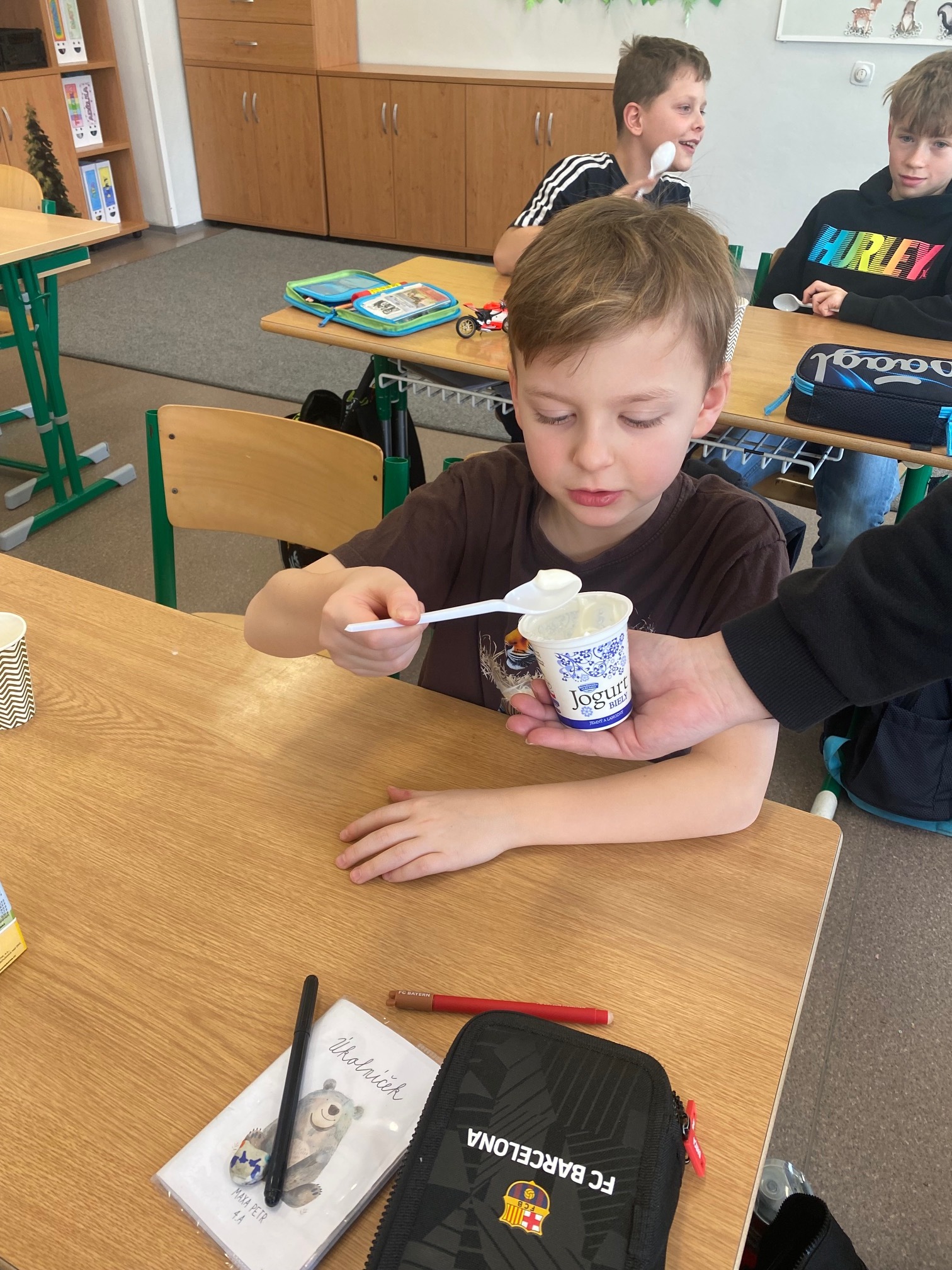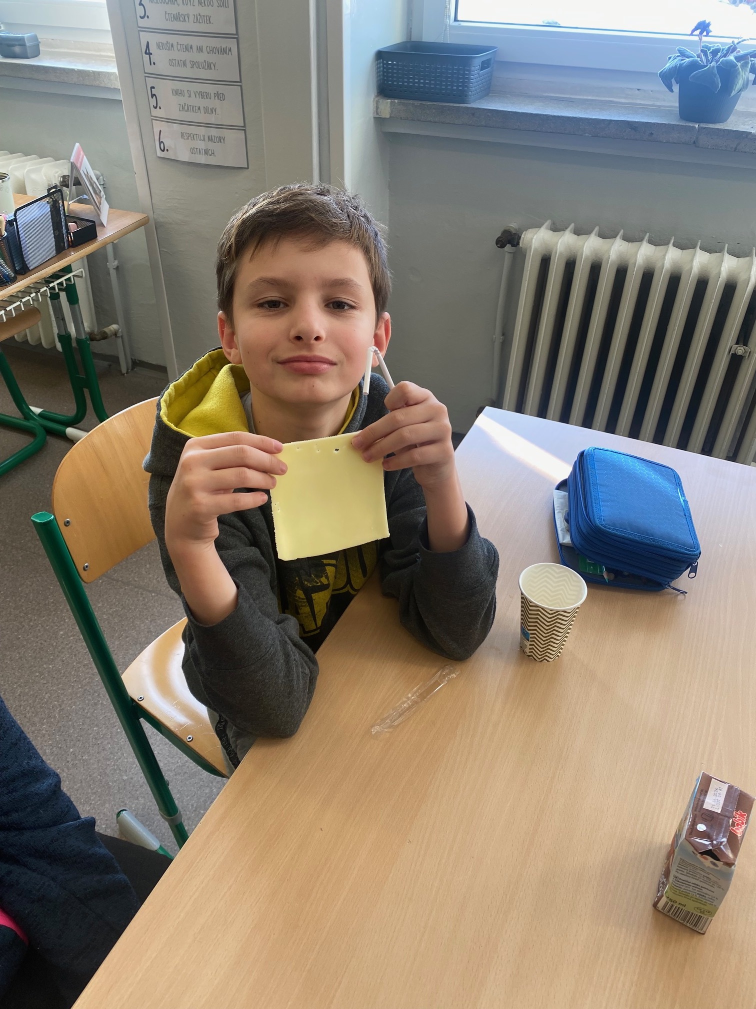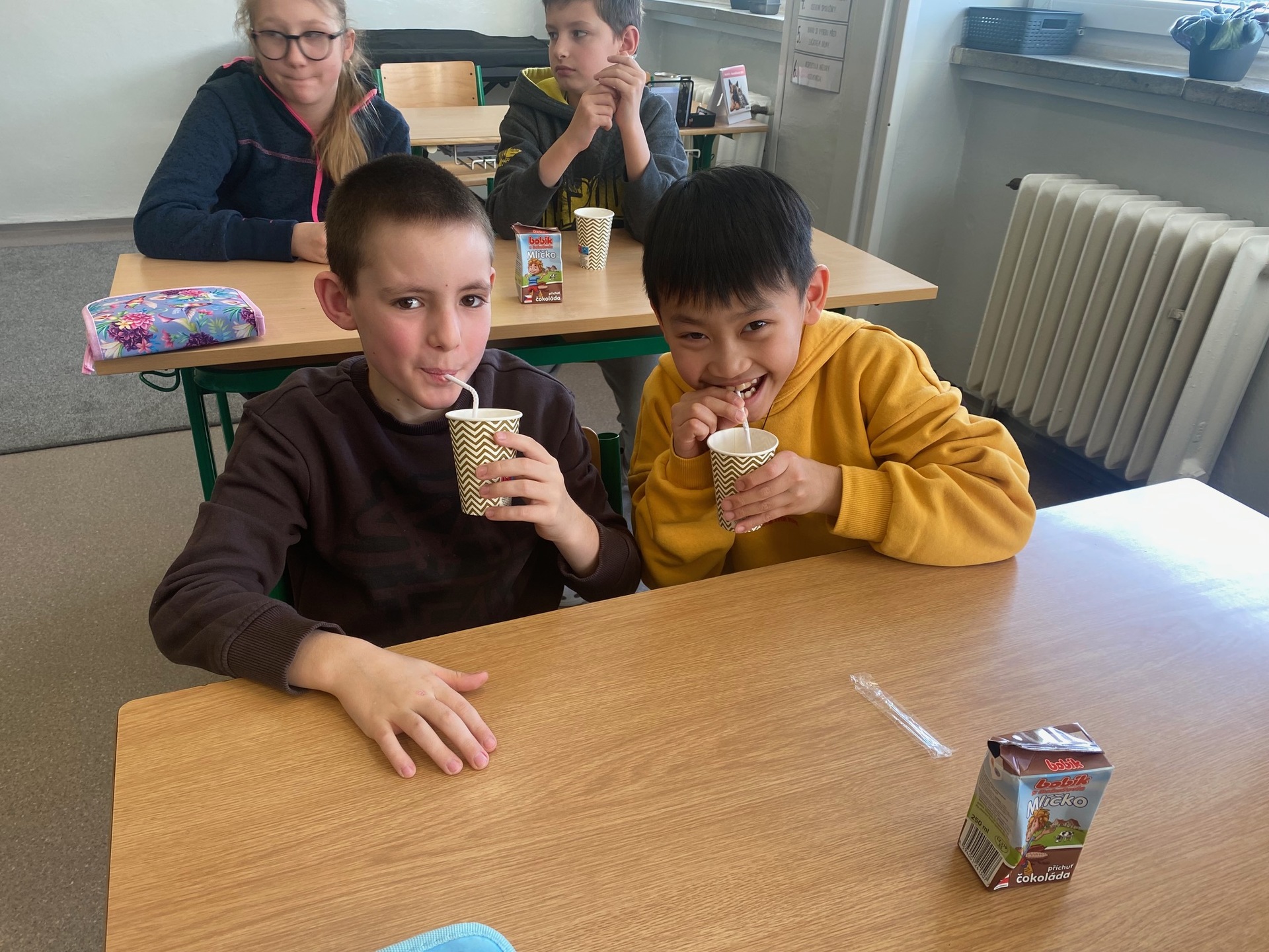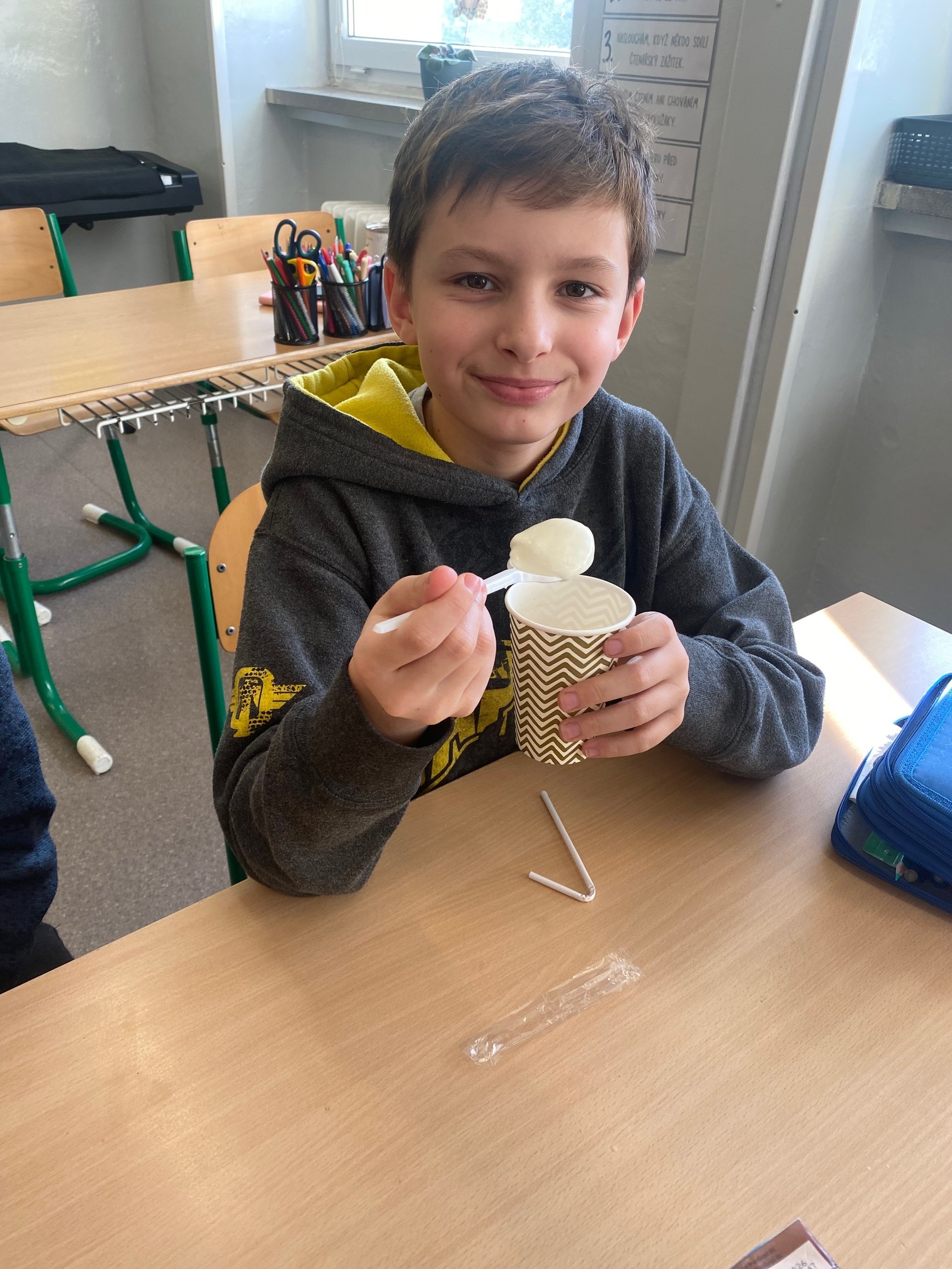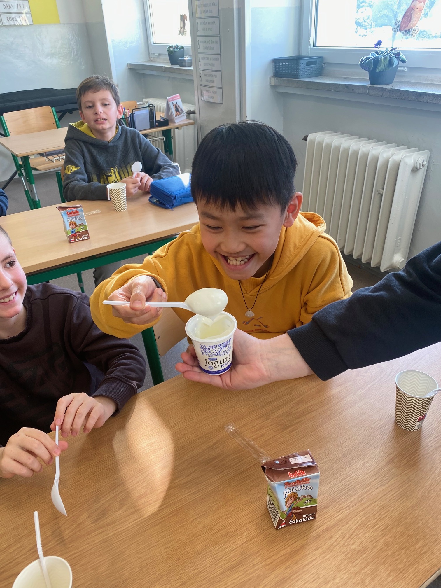 Děti měly příležitost vyzkoušet bílý jogurt, skyr, tvaroh, ochucené mléko a sýr goudu. Většině z nich výrobky velmi chutnaly a někteří žáci si díky ochutnávce našli i nové oblíbené dobroty. Společně jsme si také povídali o tom, proč jsou mléčné výrobky pro naše tělo prospěšné a proč je důležité je zařazovat do jídelníčku.